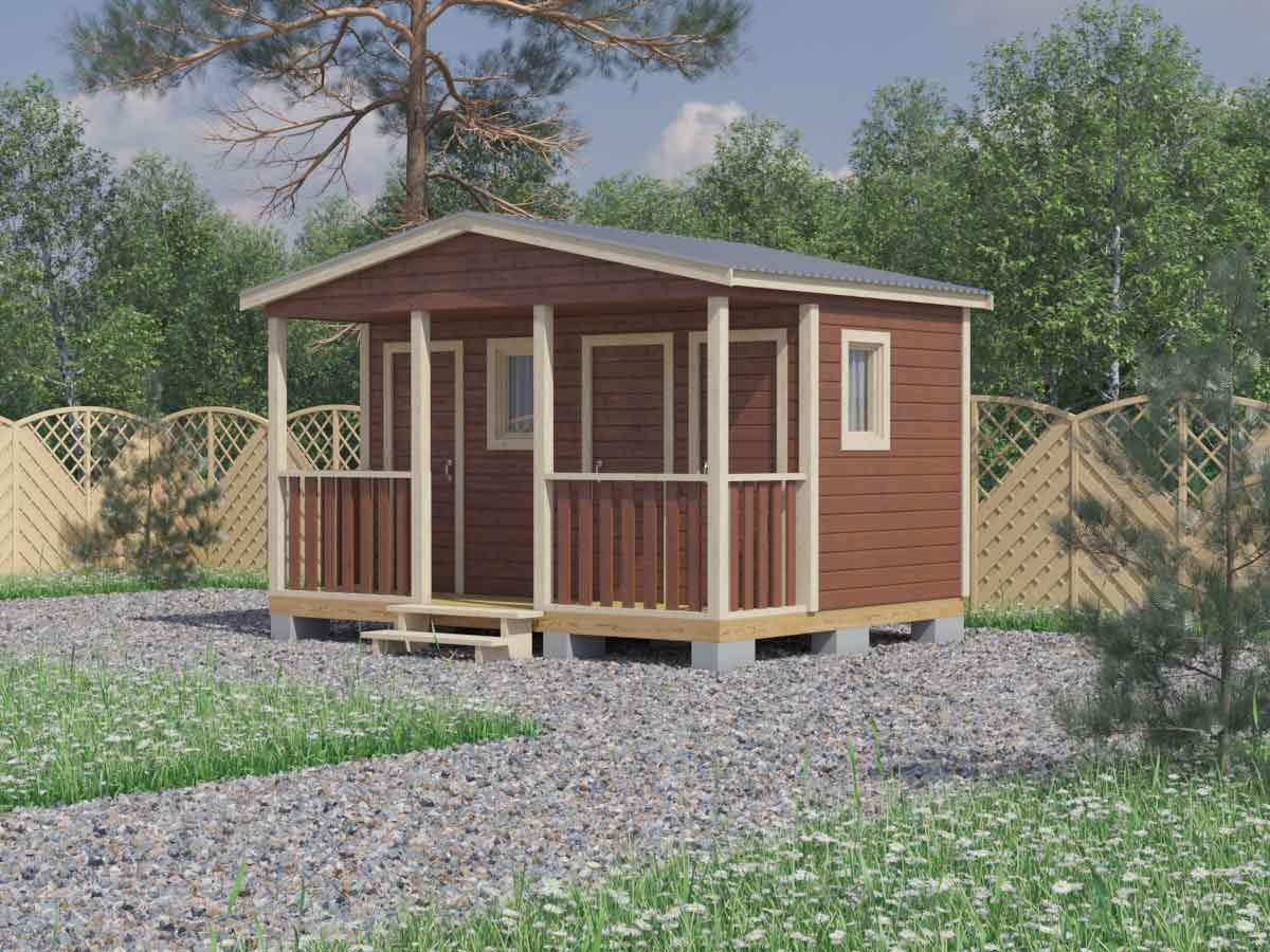 Бытовка для дачи в стиле хай-тек 4,8х3 с верандой4,8х314.4ДВП-Оргалит: