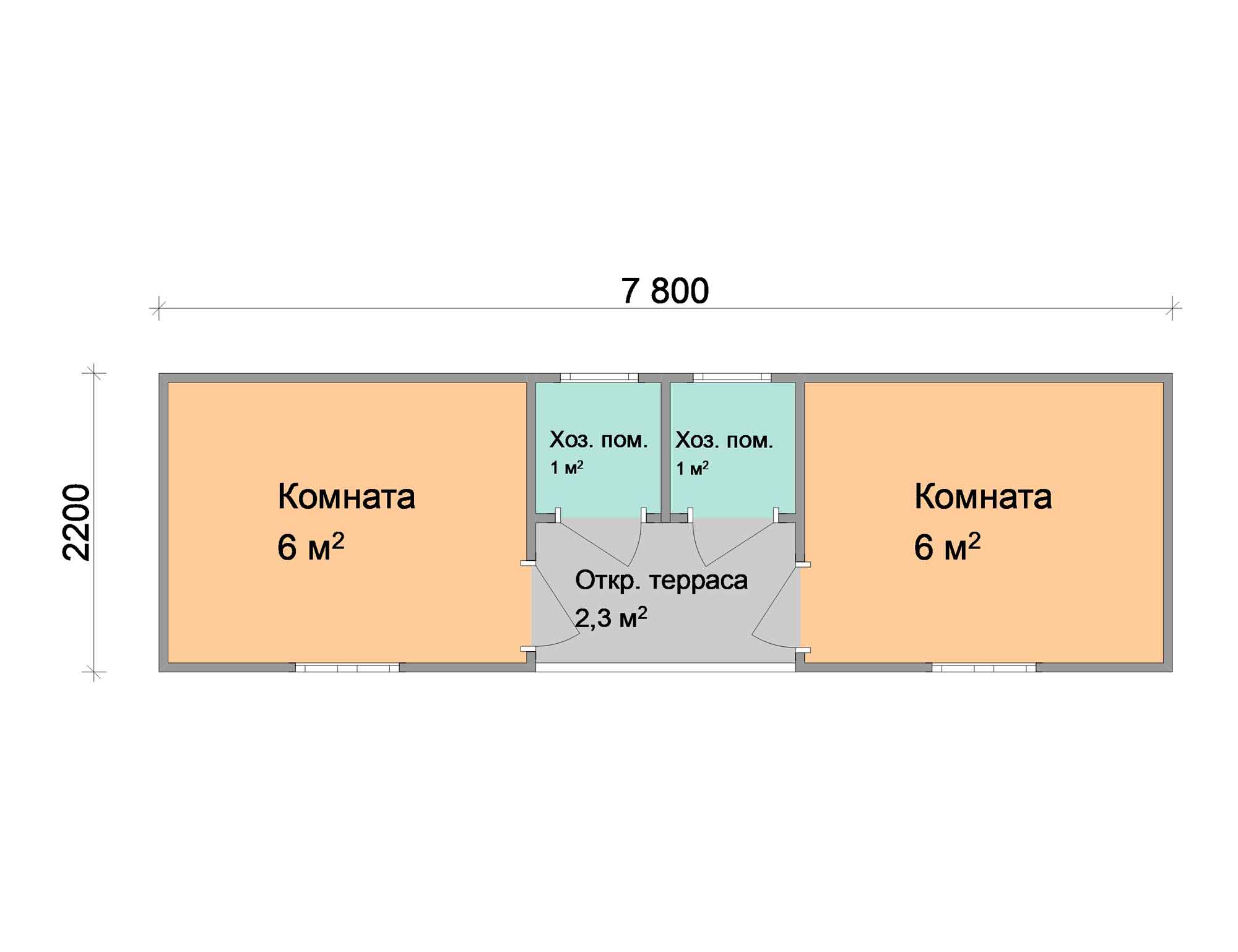 Бытовка для дачи в стиле хай-тек 6х2.4 распашонка6х2,414,4ДВП-Оргалит: